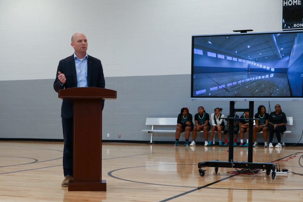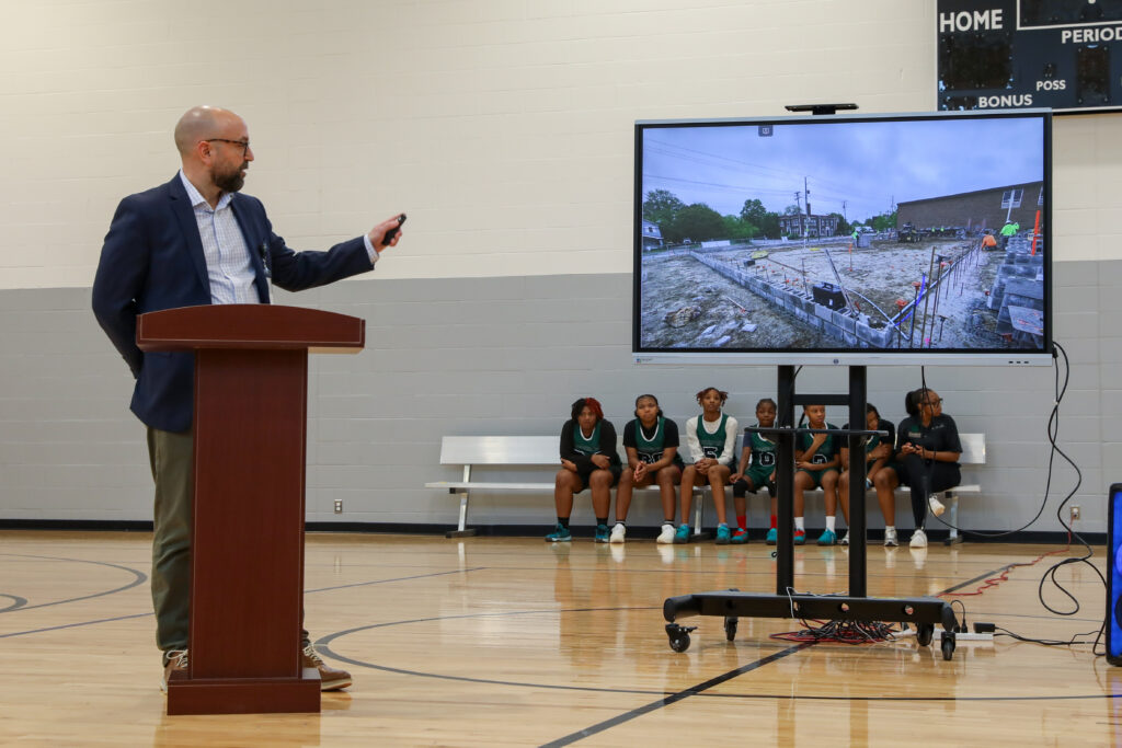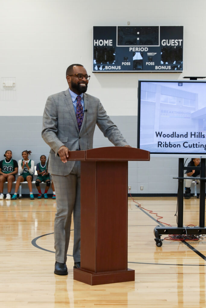 Susan Ertle, President of the Friends of Breakthrough (FOB), opened the ceremony and introduced Breakthrough Schools CEO Andrew McRae and Woodland Hills Principal Ron Browning, who together cut the ceremonial ribbon signifying the next chapter for the campus. Breakthrough Public Schools COO Matt Sattler then shared a thoughtful overview of the planning and decision-making process that led to this project and outlined the long-term vision for the Woodland Hills Campus.